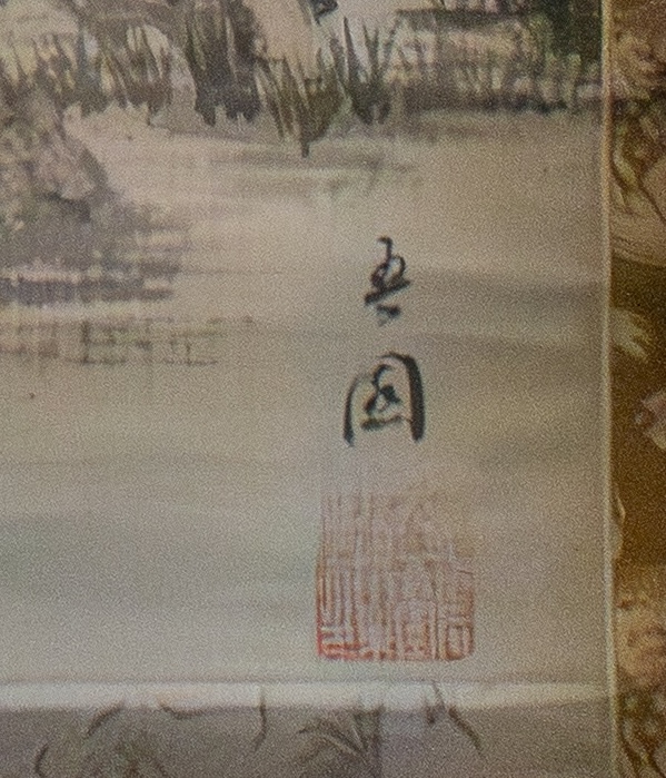 간송미술관 소장품은 서예가 김가진이 쓴 제목과 안중식의 제문이 있으며, 화면 오른쪽 아래 오원의 관서가 있다.