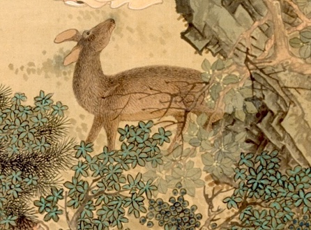 국립중앙박물관 소장품은 초가집이 아래로 내려가고 동자 대신 사슴이 등장한다.