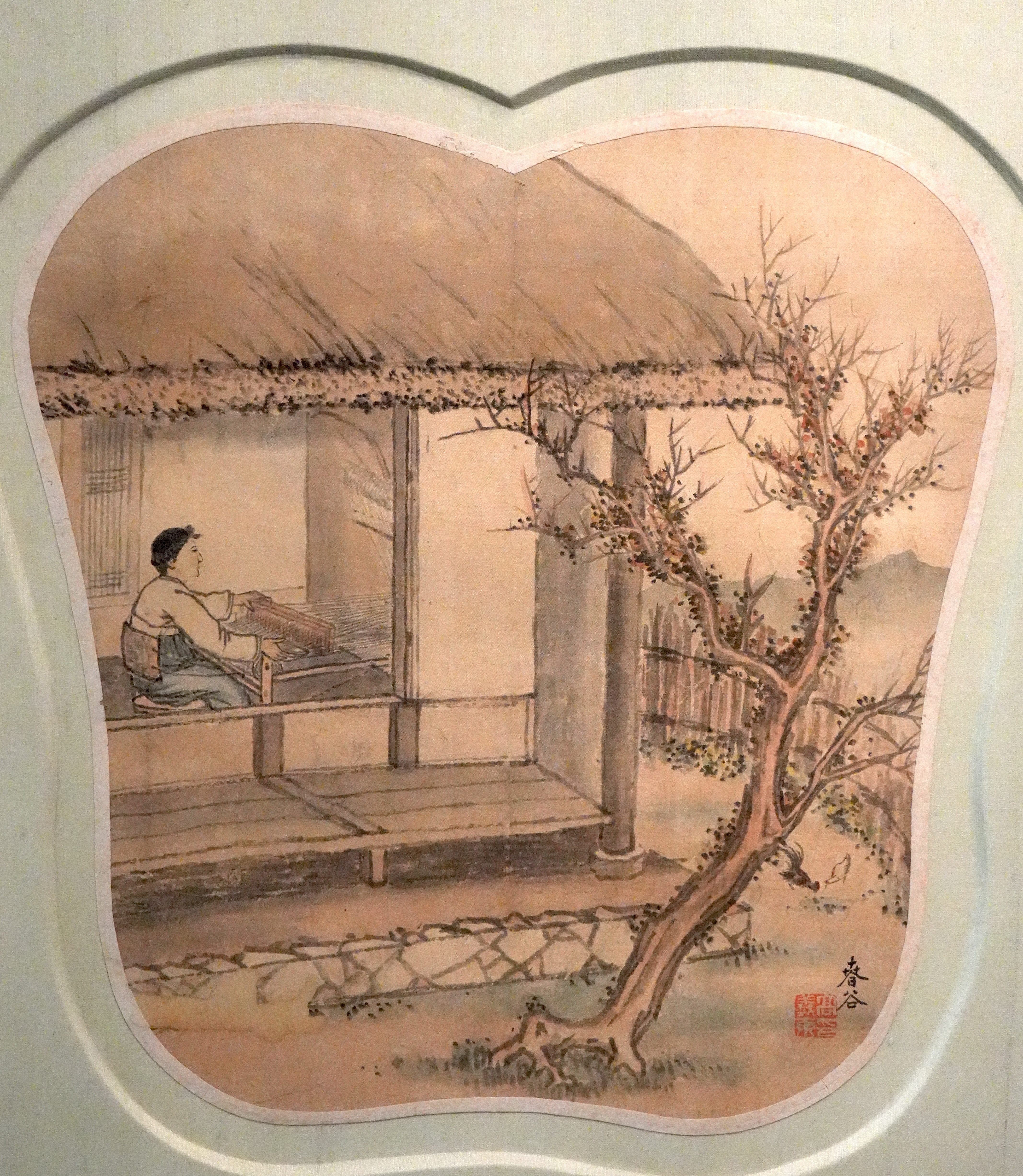 벽오동 아래에는 초가집과 인물을 통해서 한적하고 은일한 분위기가 느껴진다.