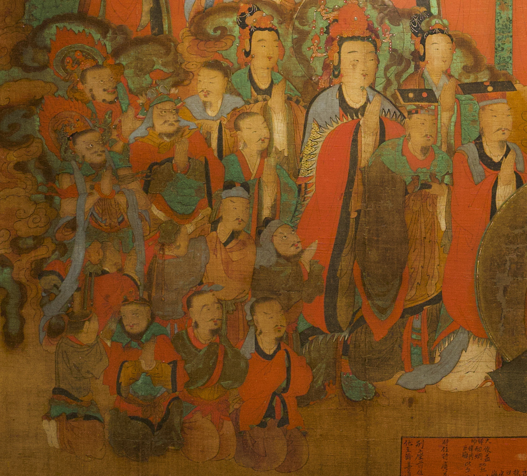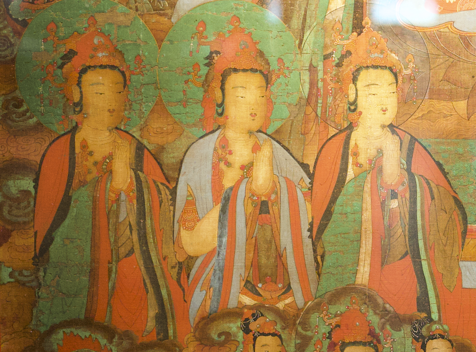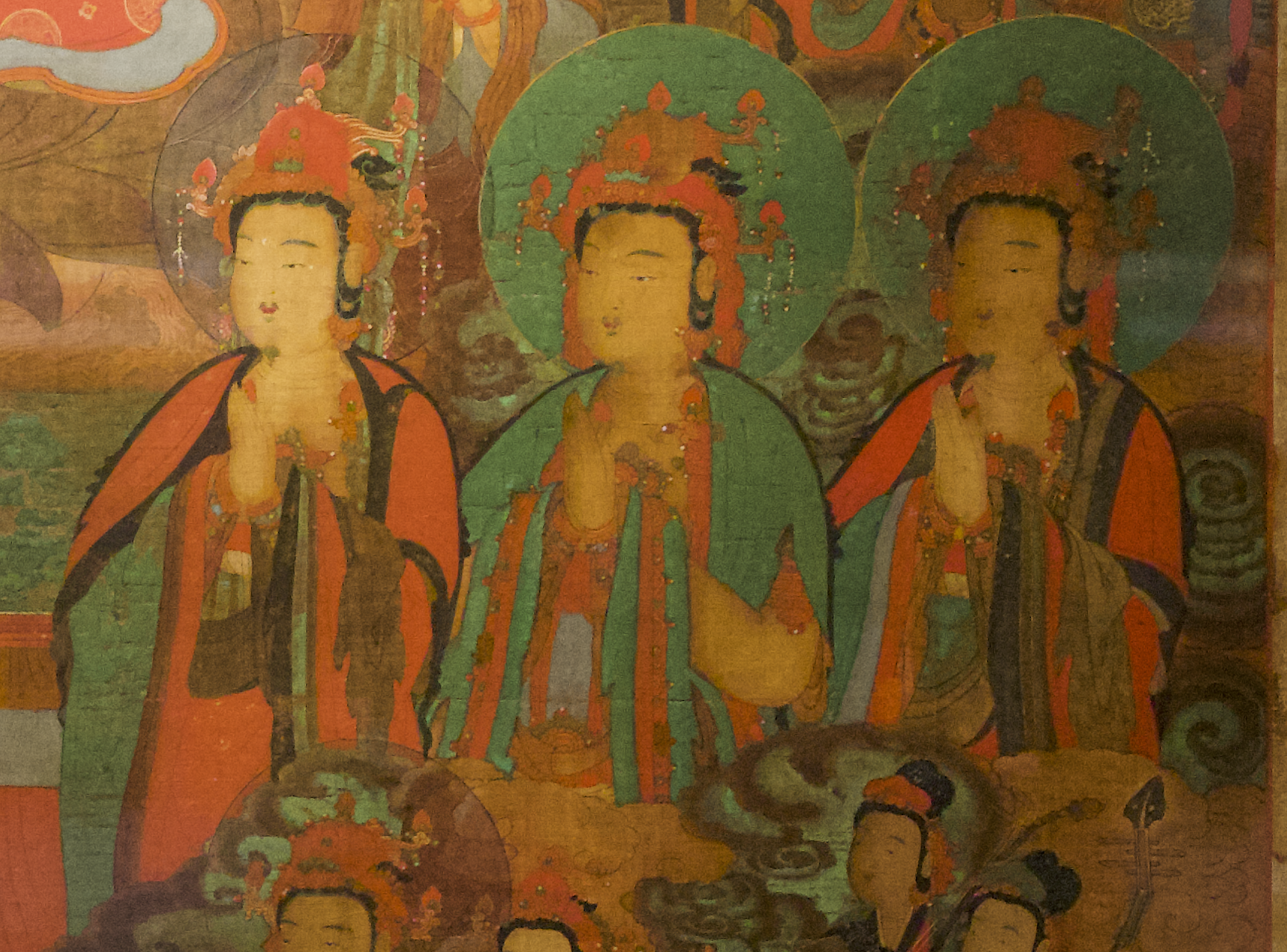 좌우 첫 번째 보살의 두광은 담묵이고 나머지 보살은 암녹색으로 표현되어 있는데,