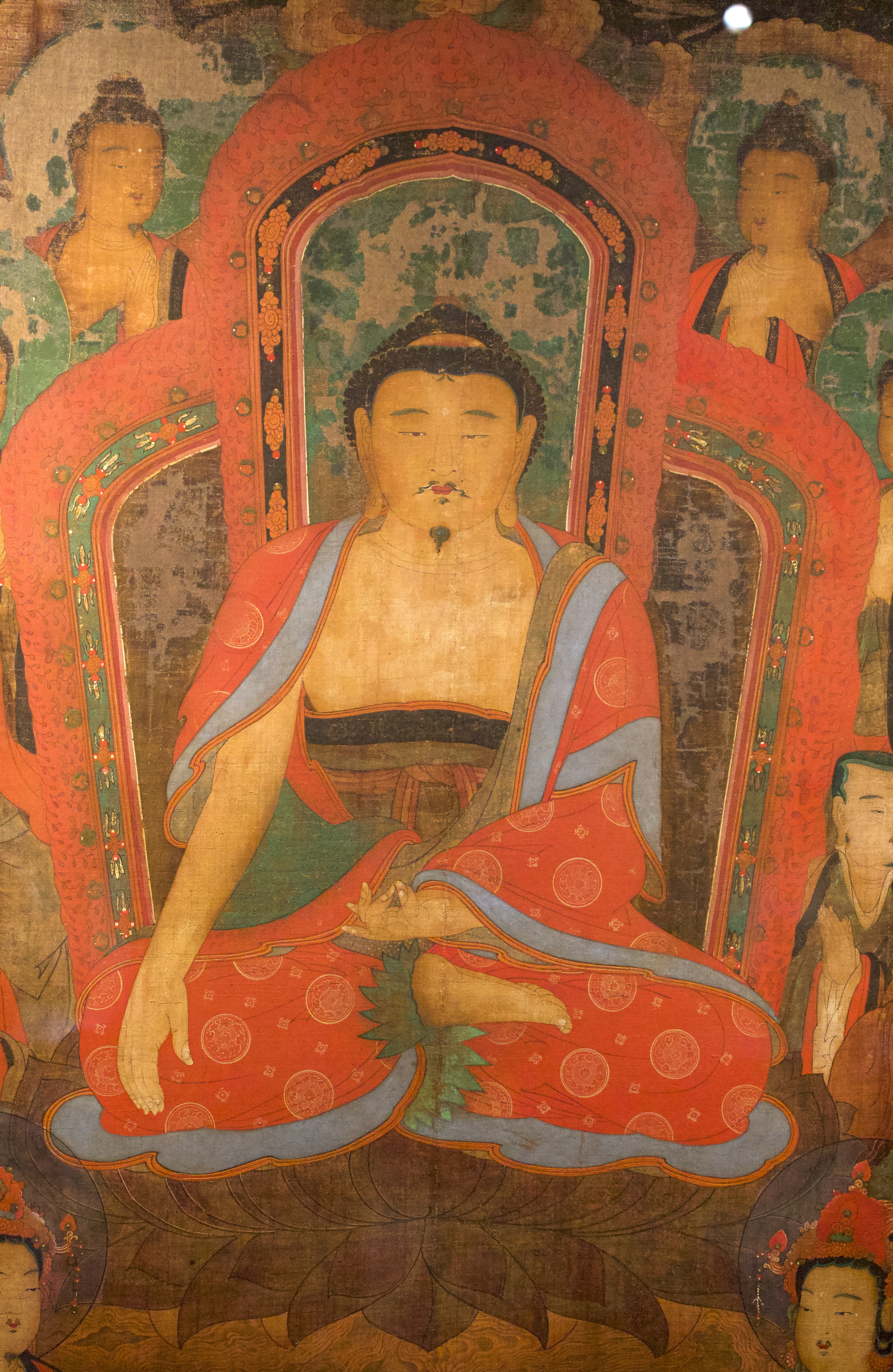 본존 상단 광배에는 4위의 부처가 배치되어 있다.