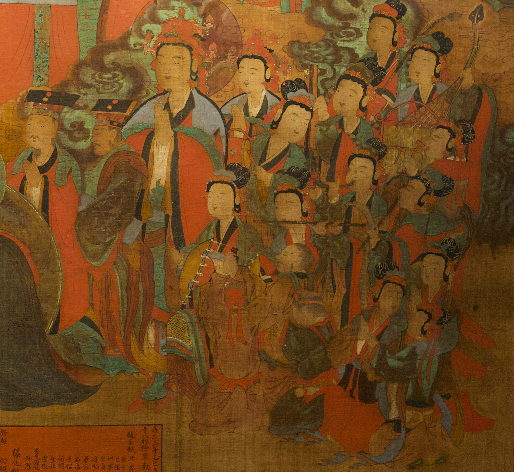 주악천인은 장고, 당비파, 해금, 생황 등 다양한 악기를 들고 연주하고 있으며
