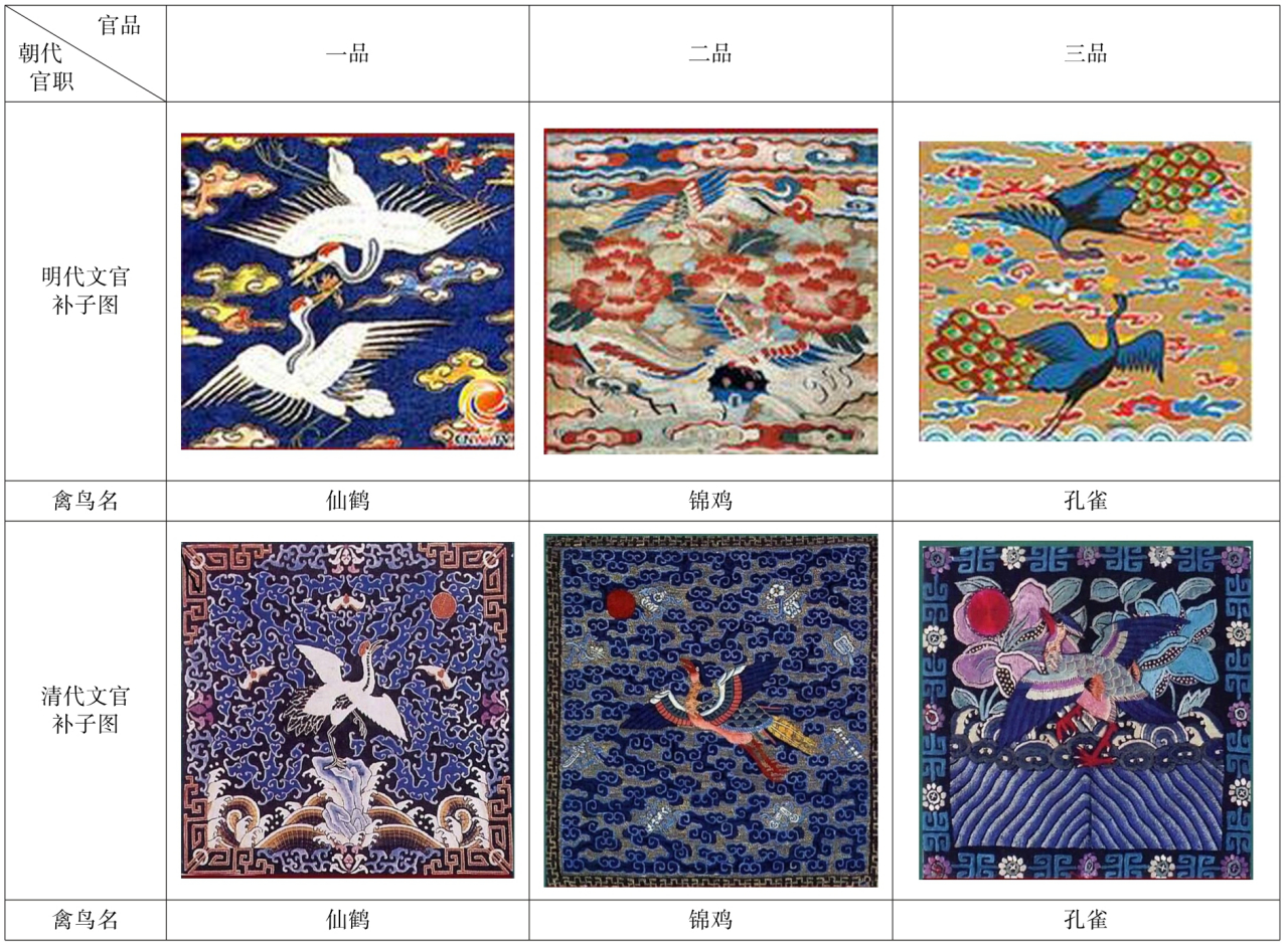 문관은 1품 공작·2품 운안·3품 백학, 무관은 1품과 2품이 호표·3품은 웅표