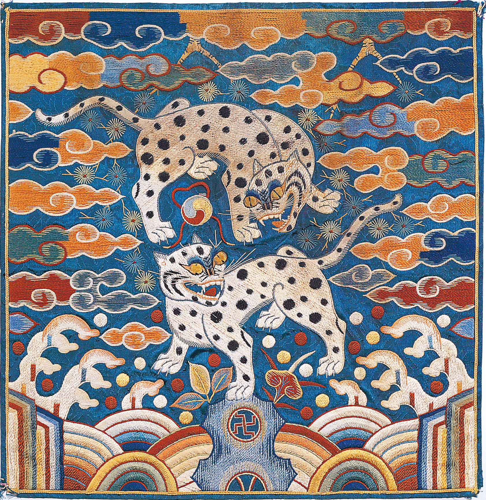 강희제 시기는 바탕을 금사로 화려하게 수놓은 흉배가 유행한다.