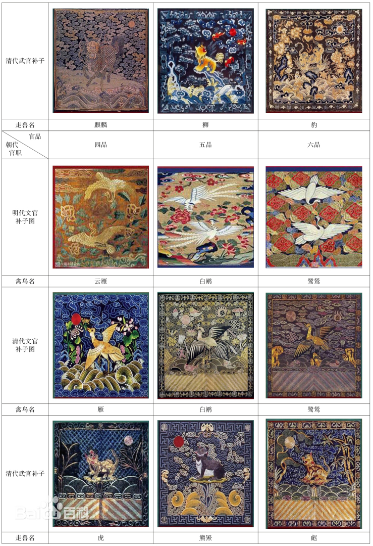 초기에는 문관 흉배에서만 나타났으나, 강희제 시기를 지나면서 모든 관복에 적용되었다.