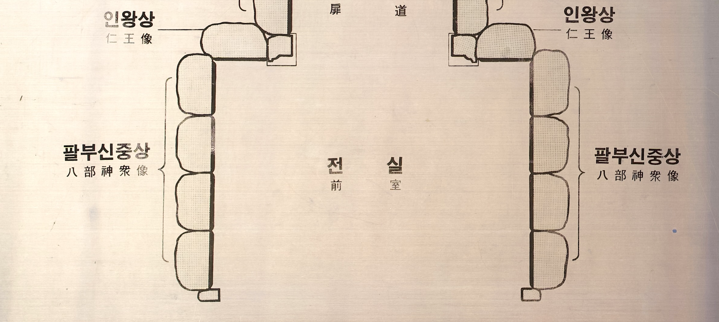 첫 번째 공간인 전실에는 팔부신중과 금강역사가 배치되어 있다.