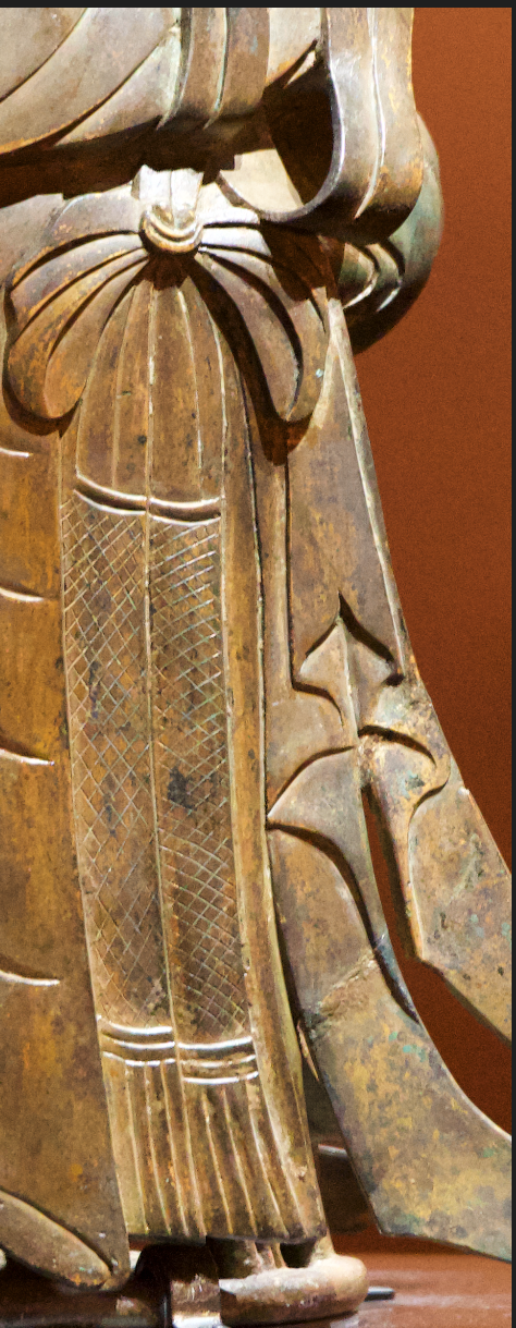 군의는 U자형과 Ω형이고, 오른쪽 다리는 S자형, 왼쪽 다리에는 U자형 주름이 자연스럽고 부드럽게 표현되어 있다.