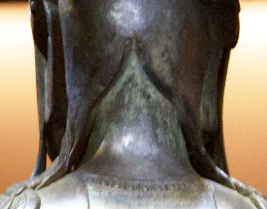 머리 뒷면은 광배를 끼웠을 것으로 생각되는 흔적이 보인다.