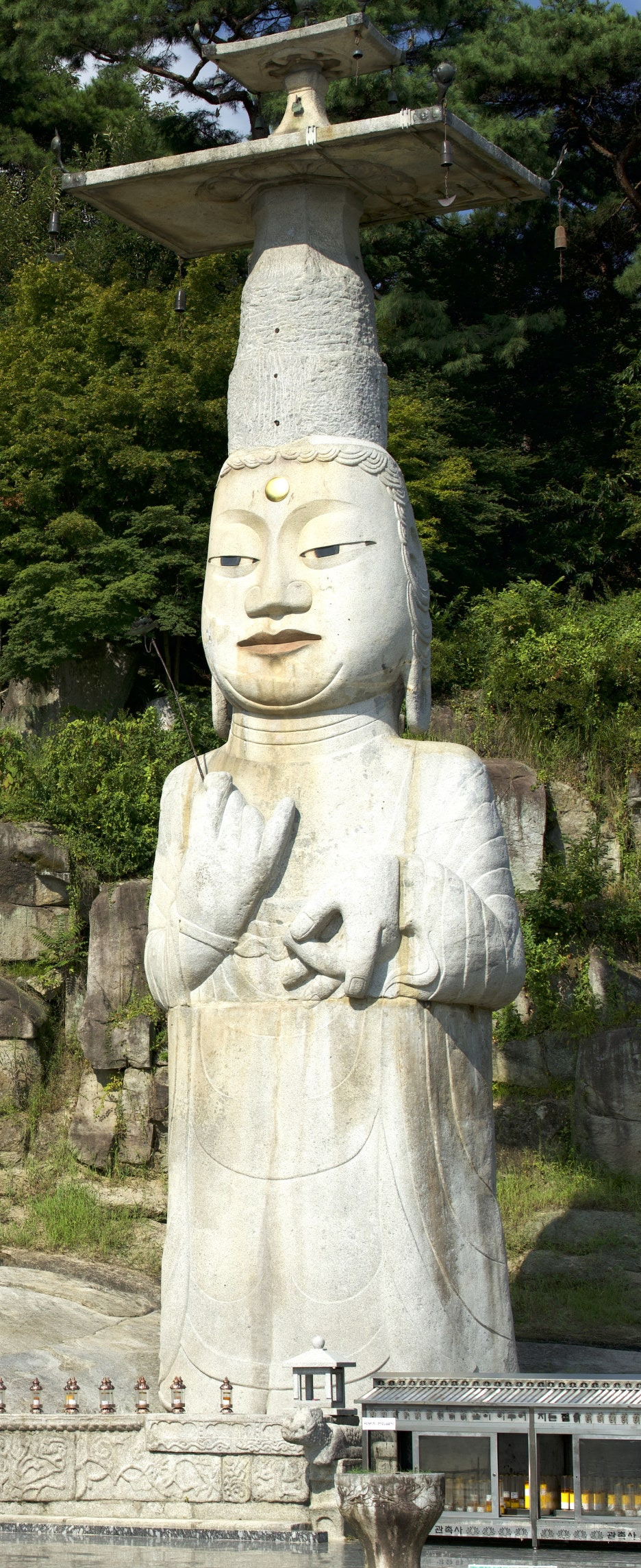 대좌는 자연석 그대로 사용했고, 그 위로 불신·머리·보관을 쌓아 올렸다.