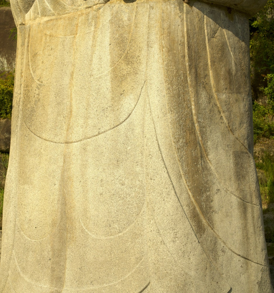 착의법은 통견의로 옷주름은 간략하게 선각으로만 처리하고,
