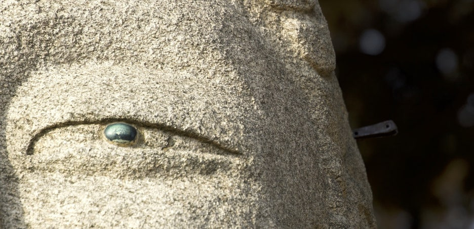 콧날과 눈썹은 평면적이나, 콧구멍은 세밀하게 조각되어 대비를 이룬다.