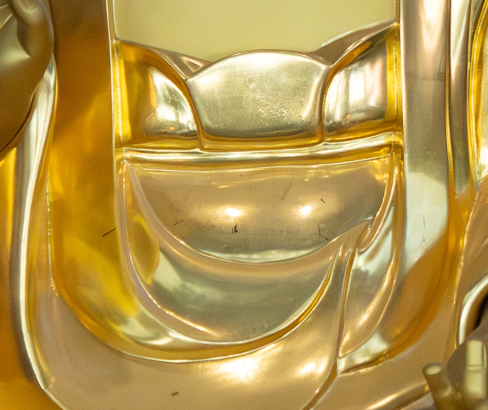 신체 비례는 안정적이며 대의 안쪽에 편삼을 걸쳤다.